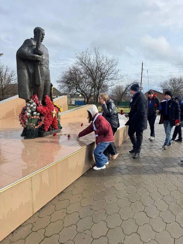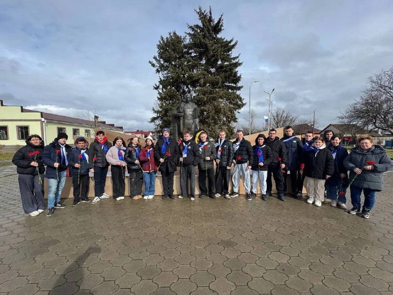 Студенты Егорлыкского колледжа приняли участие во Всероссийской акции, посвященной Дню защитника Отечества — «Цветы у обелиска».